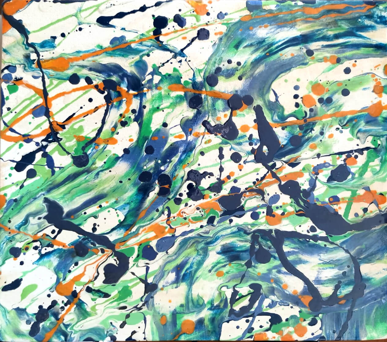 Discover a captivating hand-painted abstract acrylic painting boasting vibrant colors of dark and light blue, lime, and neon orange. The dynamic composition features an array of lines in every direction, exuding a cheerful and rambunctious feel. Specks of white canvas offer a calming touch, while the freeness of the lines unwinds your mind. Embrace your creativity and explore the untamed beauty of this mesmerizing artwork. Immerse yourself in its expressive allure and be inspired by this one of a kind work of art. Unlock your creativity and explore the untamed beauty of this acrylic painting.