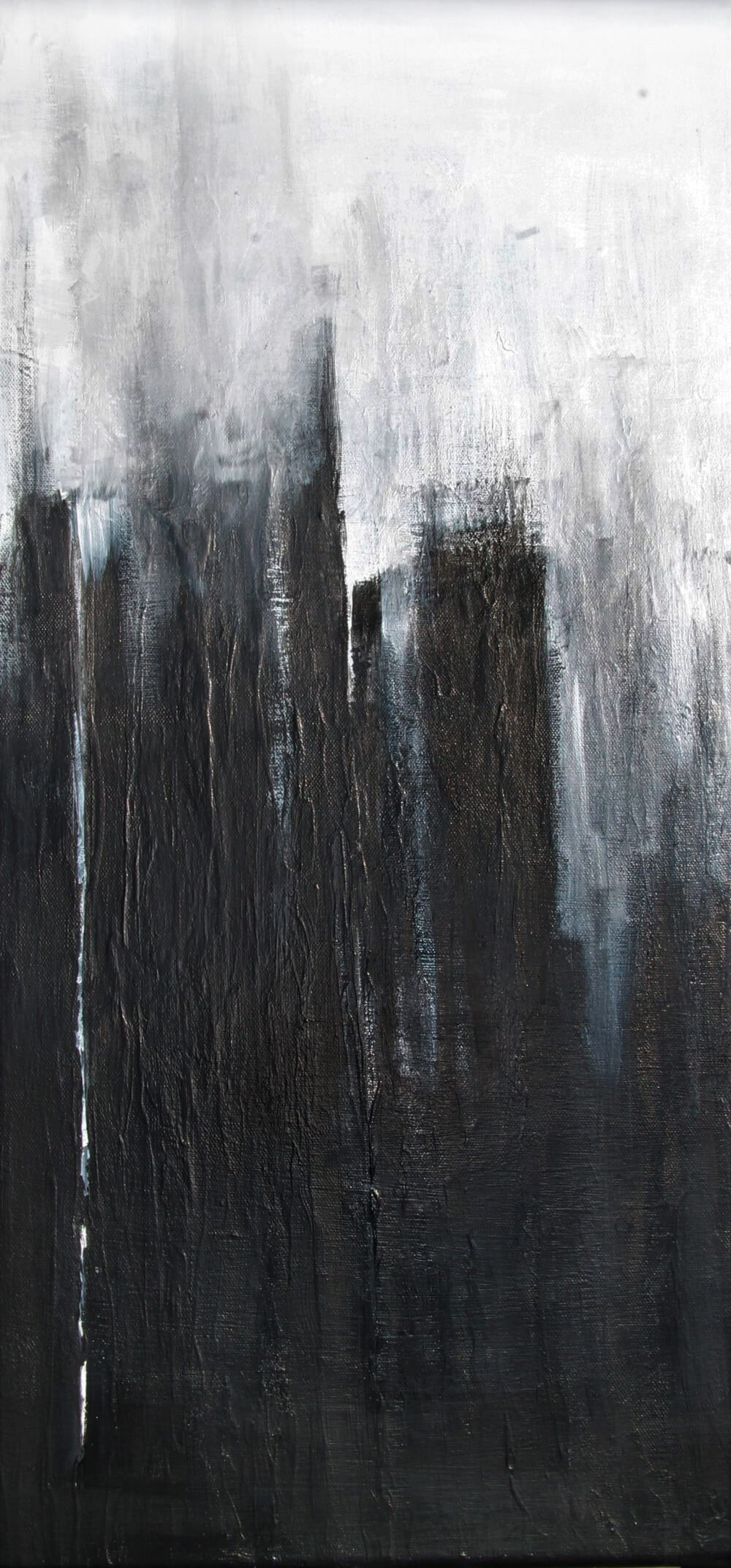 A painting of black and white acrylic on canvas creates a minimalist, yet at the same time strong and elegant visual impression. Black color creates a sense of mystery and depth, and white creates a sense of light. The contrast between these two colors is used to create the impression of a struggle between light and darkness. Black on one side and white on the other side are not merged in the middle, but a clear transition of the brush strokes is visible.
